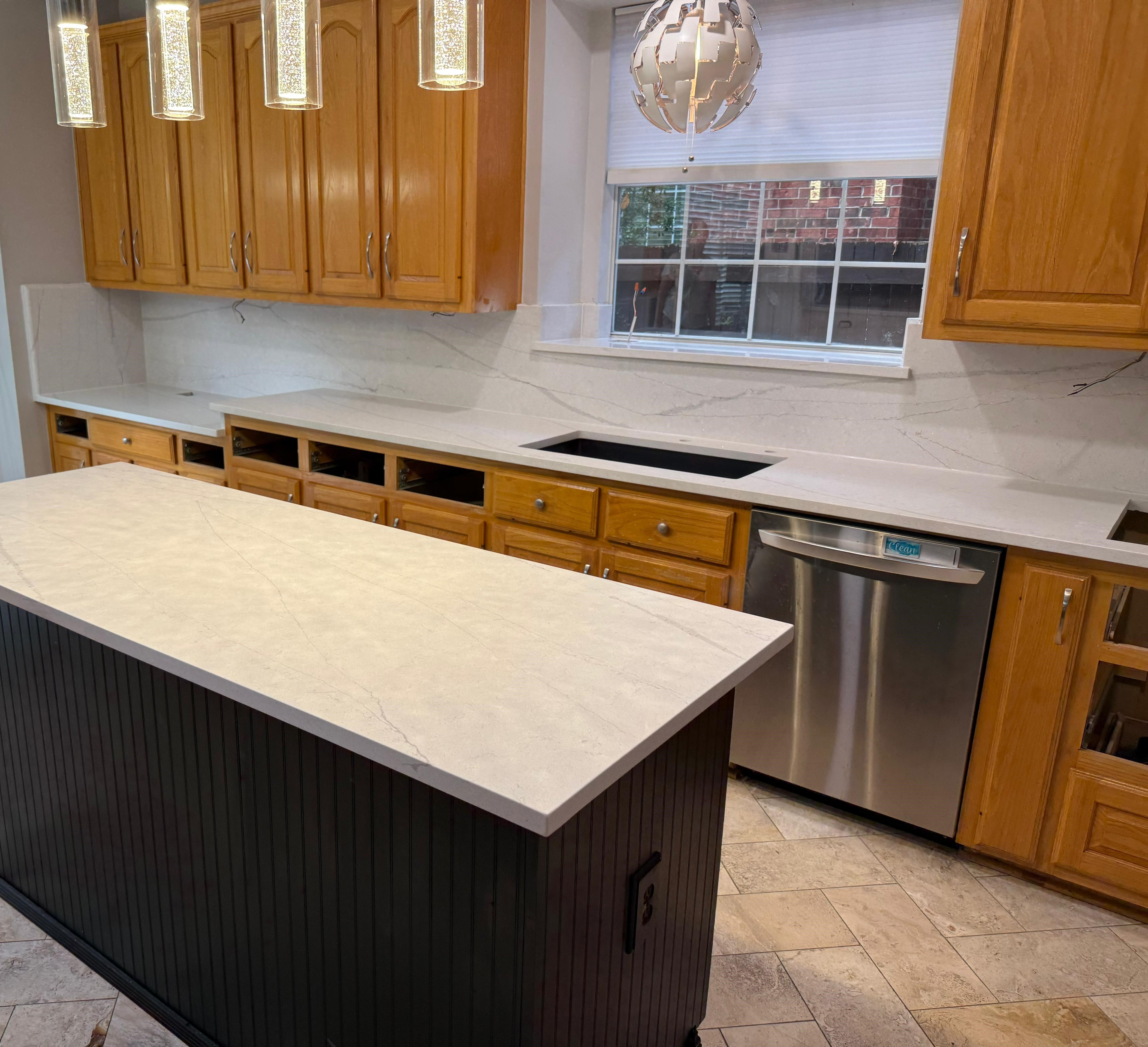 Finished quartz and granite countertops for
