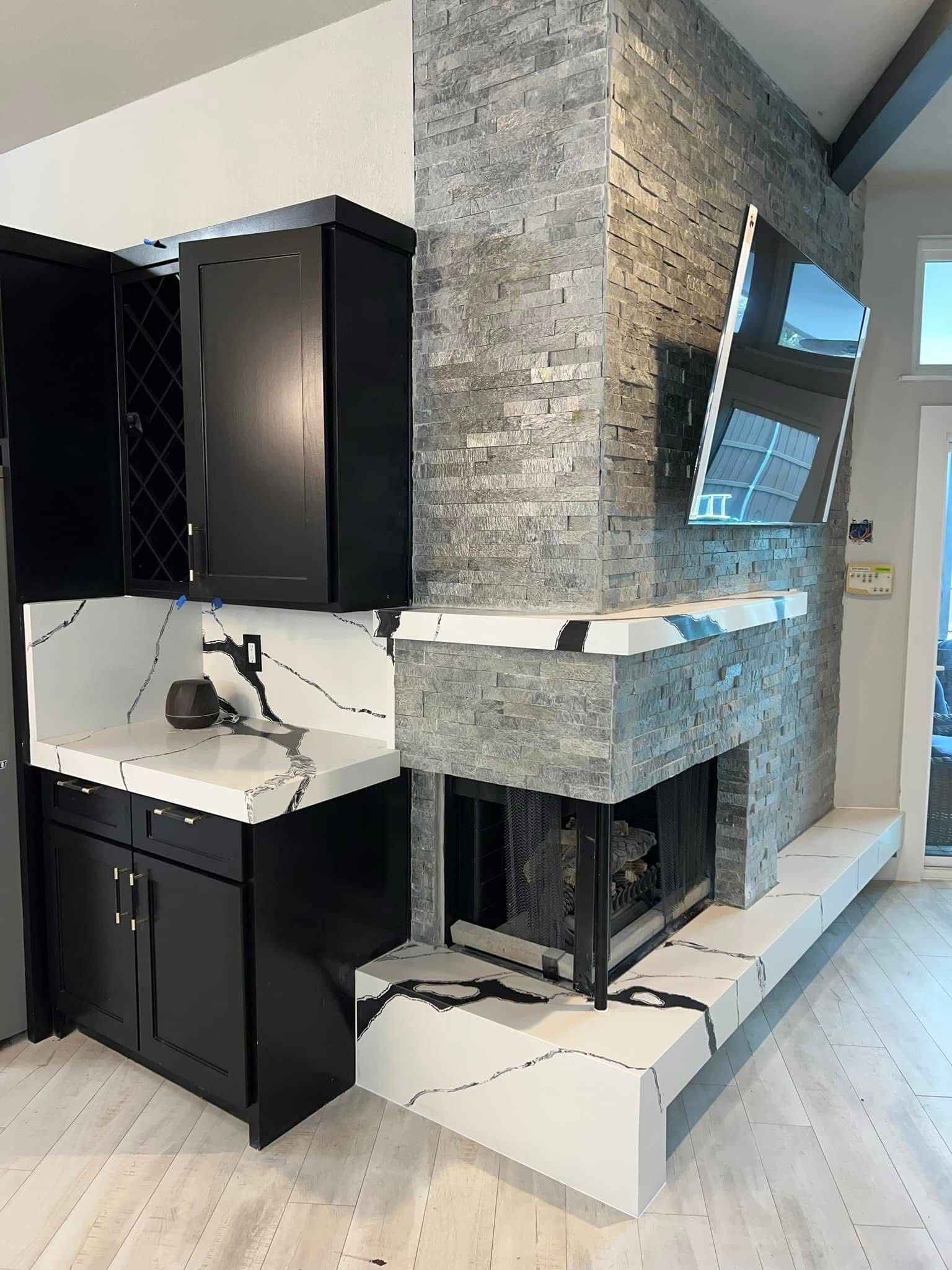 Expertly fabricated stone for kitchens, fireplaces, and custom spaces.